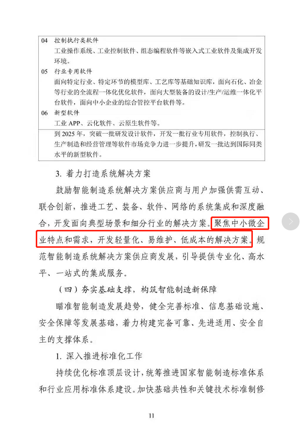 4月14日,工業和信息化部公開對《“十四五”智能制造發展規劃》征求意見。征求意見稿提出,智能制造發展水平關乎我國未來制造業的全球地位,對于加快發展現代產業體系,鞏固壯大實體經濟根基,構建新發展格局,建設數字中國具有重要作用。目前工信部倡導的方向:聚焦中小微企業特點和需求,開發輕量化、易維護、低成本的解決方案。